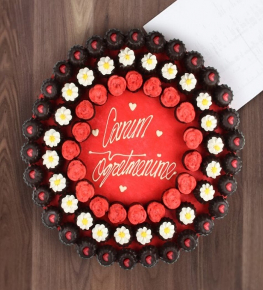 Özel günlerinizde ve en özel anlarınızda sevdiklerinize hediye edebileceğiniz lezzet dolu hediyelik meyve sepeti ürünleri ile en güzel anlarınızı tatlandırın... Ürünümüzde yaklaşık olarak, 19 adet kırmızı gül kek ve 53 adet kurabiye bulunmaktadır. Adetler ürünlerin boyutuna göre değişiklik gösterebilmektedir. Strafor çapı 39cm’dir.