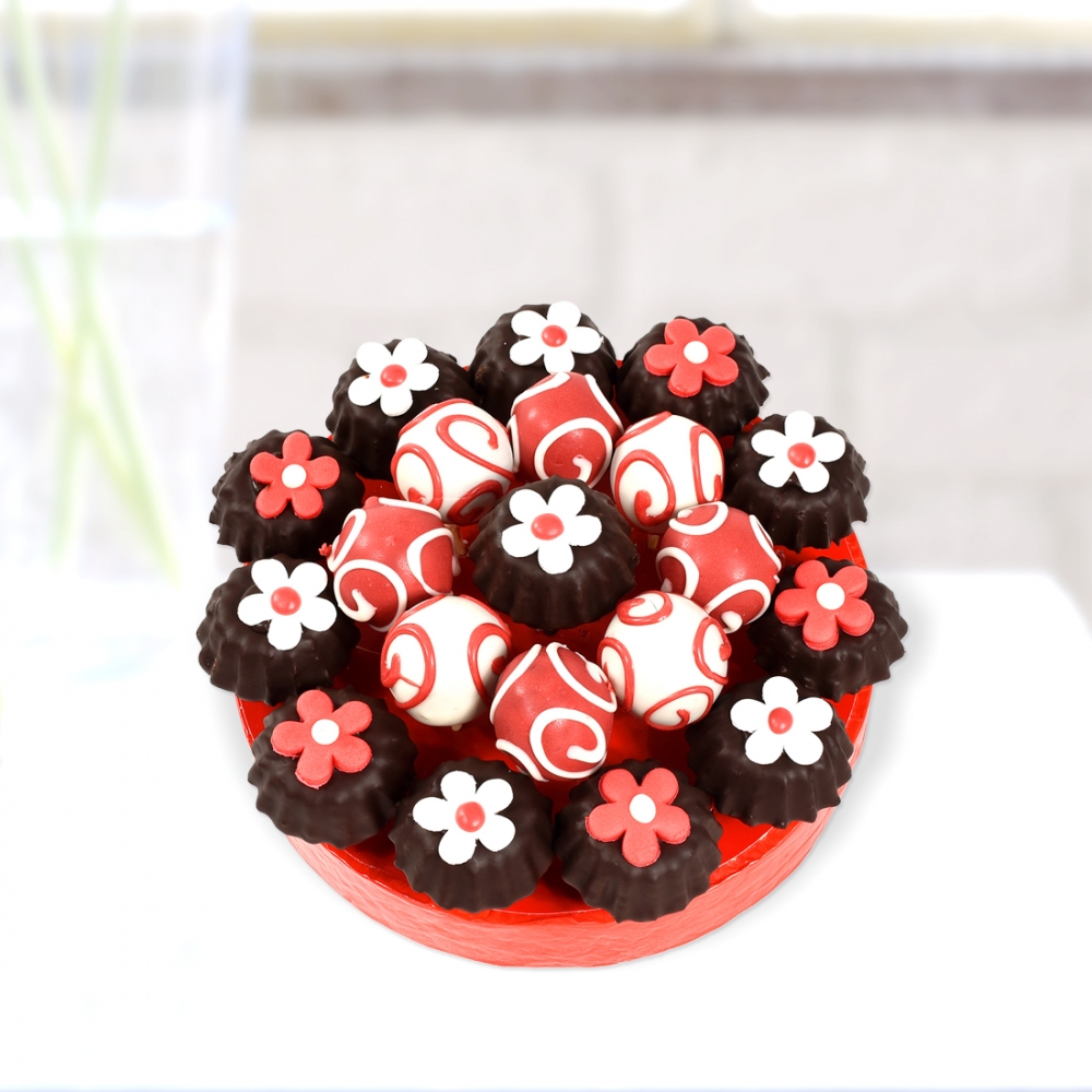 Ürünümüzde yaklaşık olarak 12 adet çikolata kaplı kurabiye çiçeği, 8 adet çikolatalı Lezzet Topu kaplı bulunmaktadır.