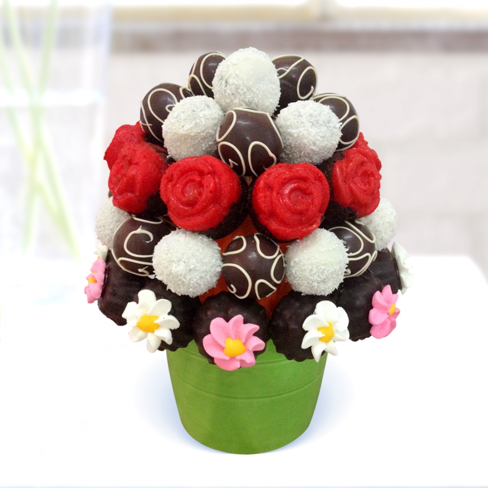Ürünümüzde yaklaşık olarak, 12 adet çikolata kaplı kurabiye, 25 adet Hindistan cevizli ve bitter çikolata kaplı Lezzet Topu, 10 adet kırmızı gül kek bulunmaktadır.