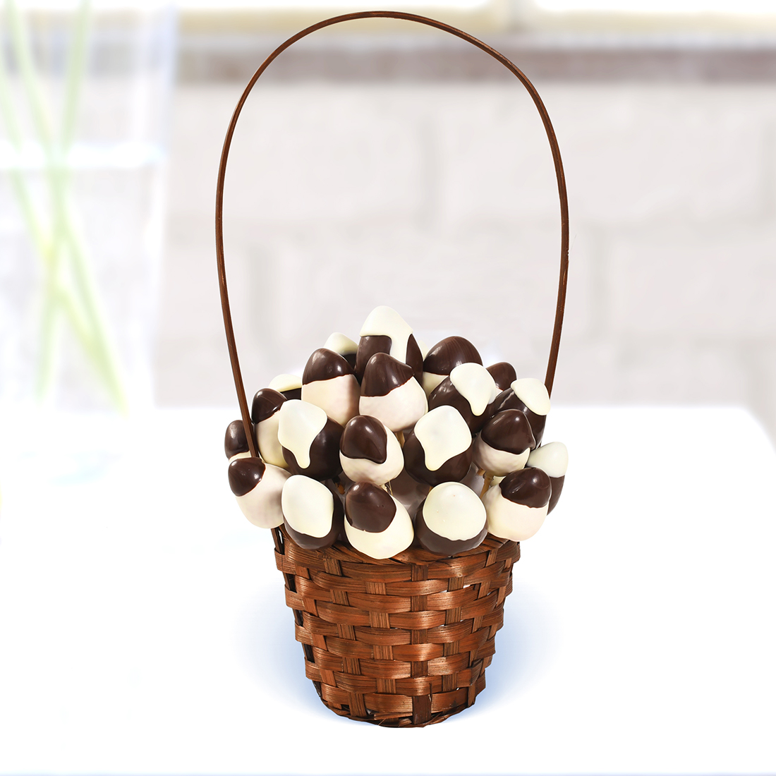 Ürünümüzde yaklaşık olarak, 29 adet sütlü ve bitter çikolata kaplı çilek bulunmaktadır. Sepet çapı 12 cm, yüksekliği 10 cm, sap yüksekliği 35 cm’dir.
