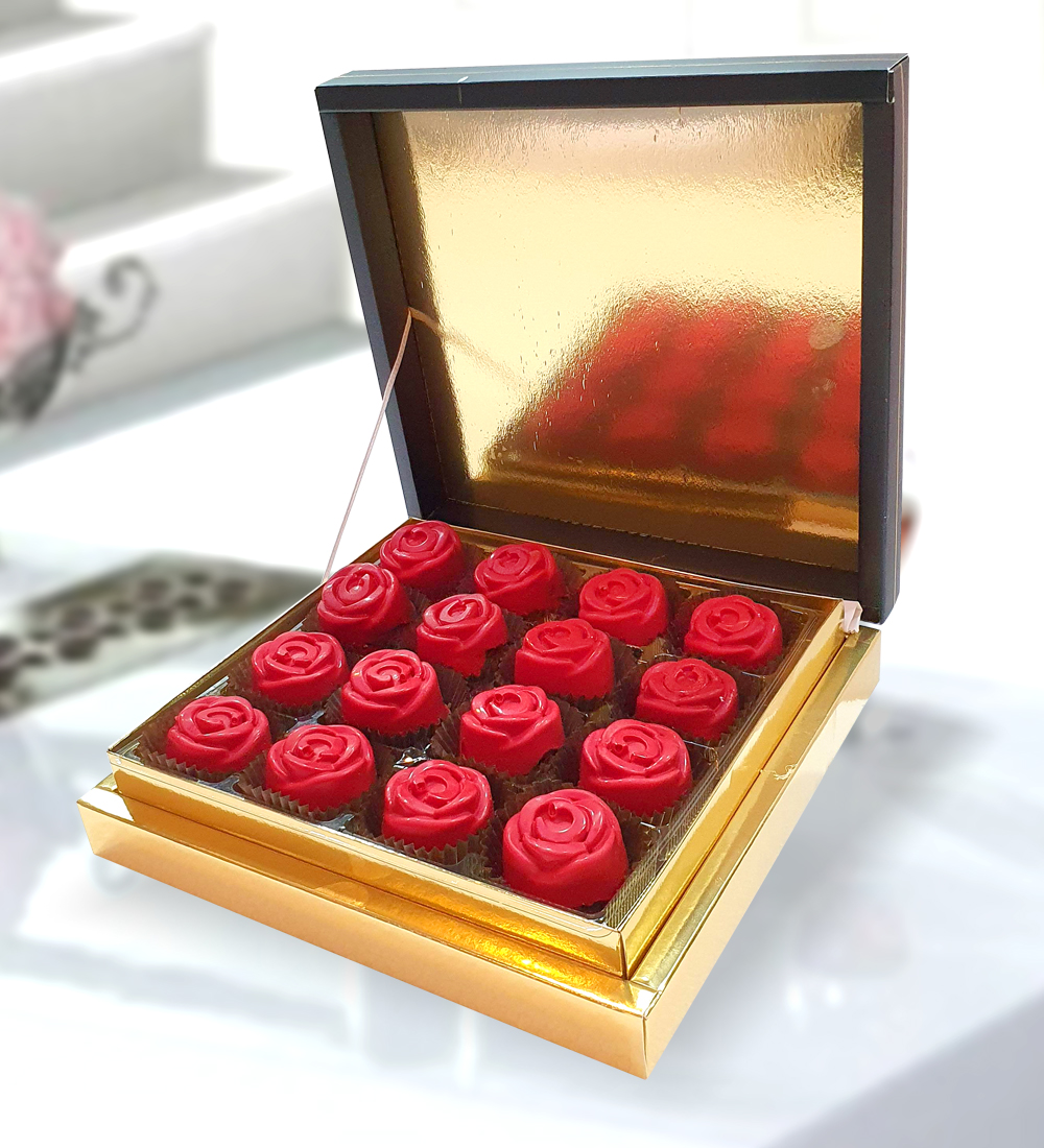 Ürünümüzde 16 adet gül şeklinde çikolata bulunmaktadır.. Kutu şekli ve rengi şube stok durumuna göre değişiklik gösterebilir..