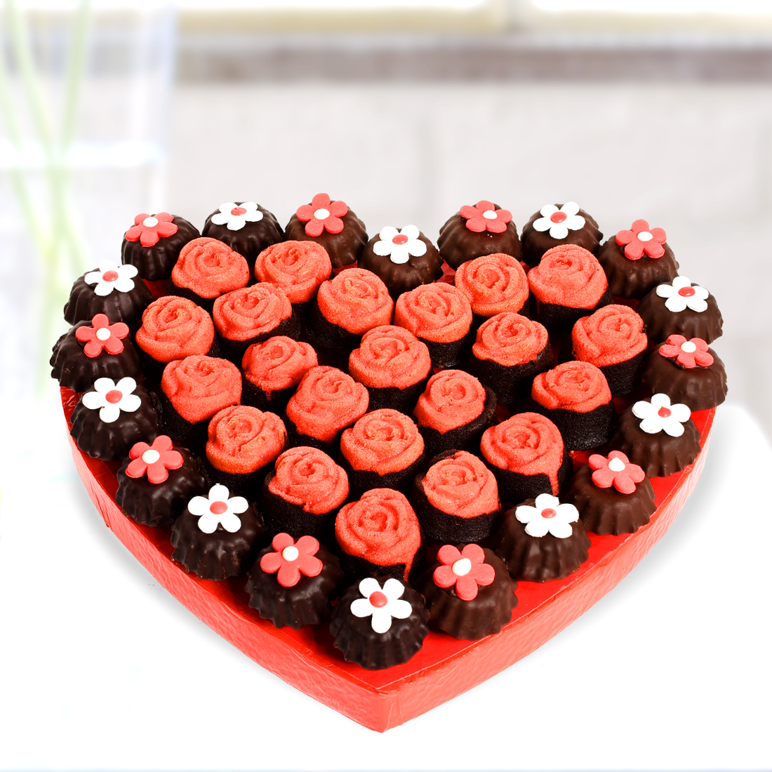 Ürünümüzde yaklaşık olarak 20 adet çikolata kaplı kurabiye çiçeği, 22 adet kırmızı gül kek bulunmaktadır.