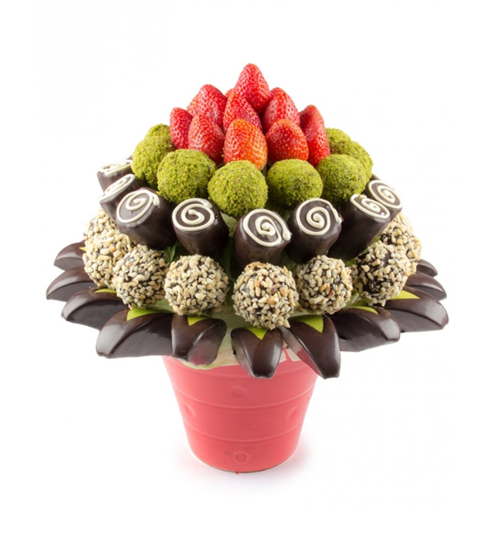 Özel günlerinizde ve en özel anlarınızda sevdiklerinize hediye edebileceğiniz lezzet dolu hediyelik meyve sepeti ürünleri ile en güzel anlarınızı tatlandırın... Ürünümüzde yaklaşık olarak, 12-15 adet çilek,18 adet elma, 15 adet çikolatalı muz, 27 adet Lezzet Topu bulunmaktadır. Adetler ürünlerin boyutuna göre değişiklik gösterebilmektedir. Saksı rengi stok durumuna göre değişiklik gösterebilir. Saksı çapı 14 cm , yüksekliği 12cm’dir.109