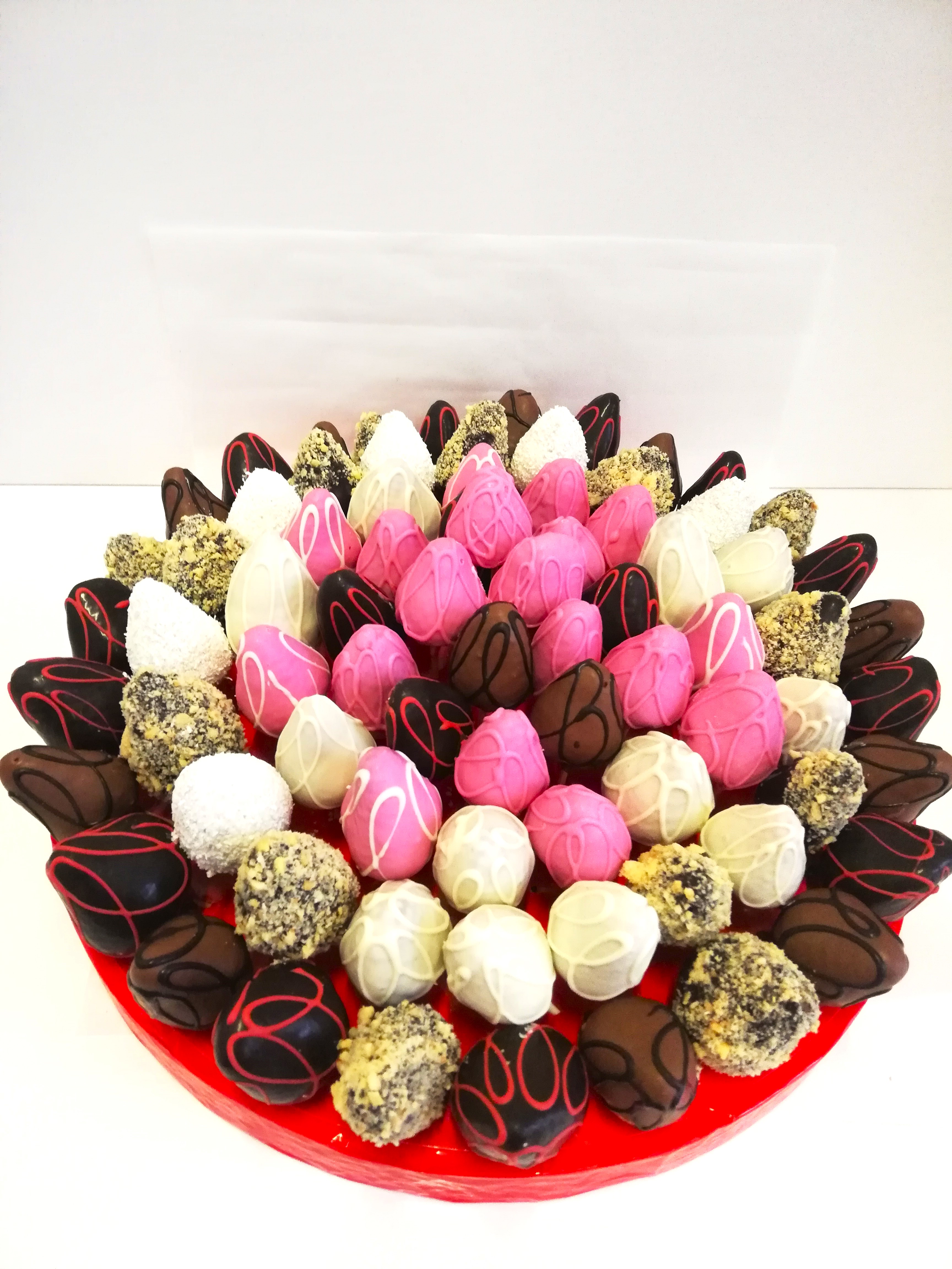 Özenle seçilmiş 75-80 adet karışık çikolatalı duble çileklerden oluşmaktadır.. Ürün sipariş verildiğinde günlük ve taze bir şekilde hazırlanır.